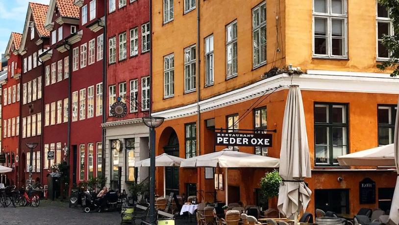 Just off the main shopping streets in the city centre, you'll find the little square Gråbrødretorv. This quiet oasis is surrounded by bright yellow, orange and red houses that create a warm atmosphere for those enjoying a meal at one of the cosy cafes. Classic colourful houses of Copenhagen.