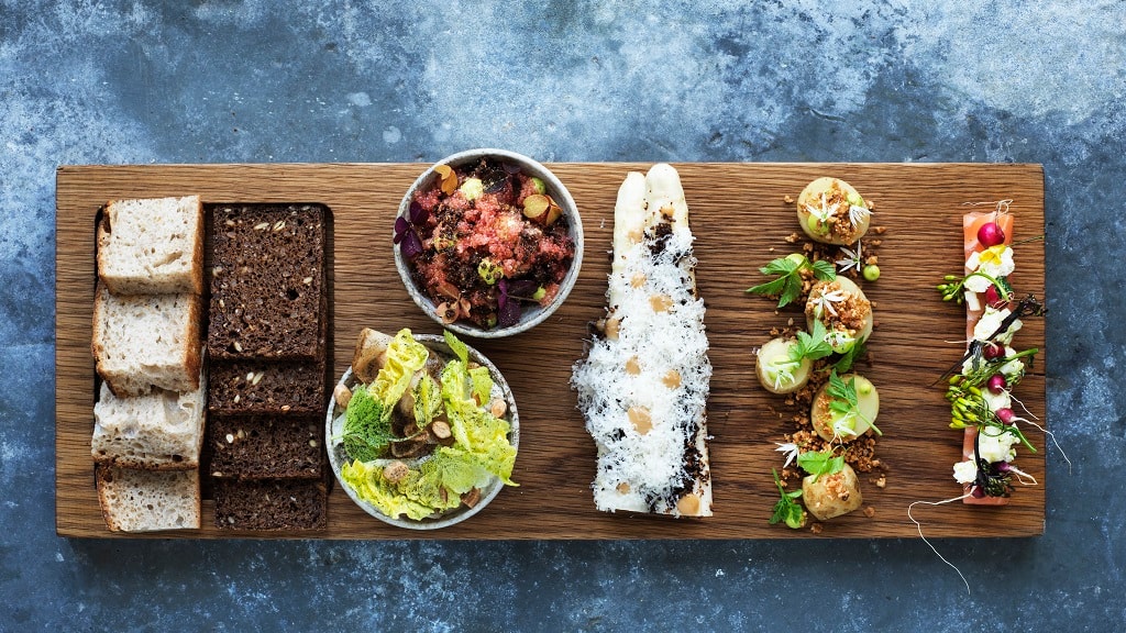 At the Michelin Guide-recommended restaurant in Copenhagen Adam Aamann and his team serves Aamanns signature smørrebrød and classic Danish dishes for lunch with home-made schnapps and local organic beer.