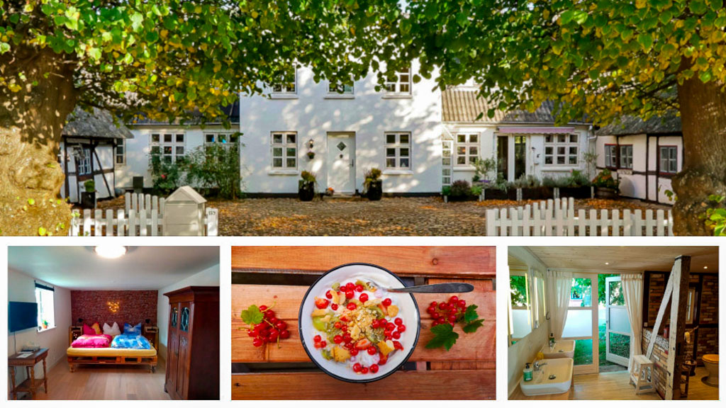 The house is an old school building from 1805, and is located at the western foot of the gently sloping church hill in the lovely village of Krarup. We offer not only accommodation with breakfast, but also various events throughout the year and a small shop where you can buy seasonal goods from the naturally grown backyard. The house is surrounded by a cozy garden, which our guests are welcome to use, as well as play equipment for children. You are also welcome to feed our animals, collect eggs in the chicken coop and harvest fruits and vegetables.