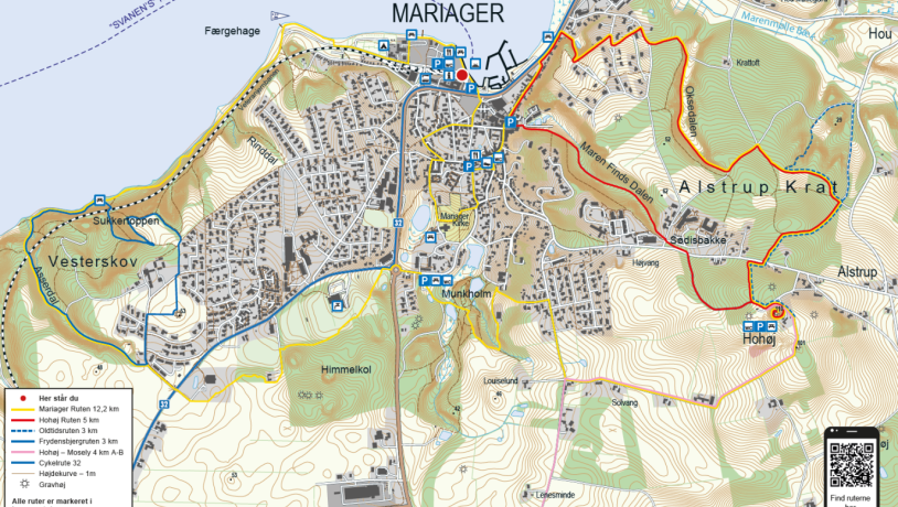 The route takes you past prehistoric sites, allowing you to explore Mariager's idyllic town center with its cobblestone streets and half-timbered houses. You will also venture into nature through places like Vesterskov, Munkholm Anlægget, Alstrup Krat, and up to Hohøj - the largest Bronze Age mound in Scandinavia.