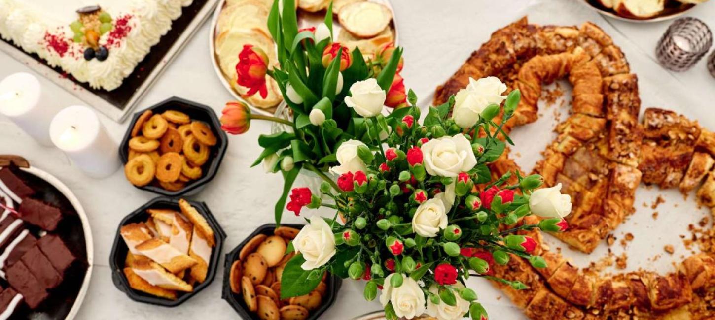 There are naturally many differing options on how to put together the perfect coffee table, but you would often start with the soft cakes, which supposedly create a good base for the rest of the feast. This category includes cakes like kringle and pastries. Then you would go to the dry cakes, including the sponges and tarts. Lastly, you would have the hard cakes, which would be different types of cookies and biscuits.