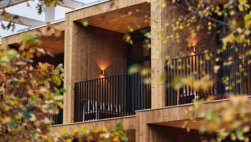 Besides the rooms, the new wing also includes a conference room and a rooftop spa – all built using wooden materials that are not only climate neutral but will actually provide a positive climate footprint, since wood naturally absorbs CO2.