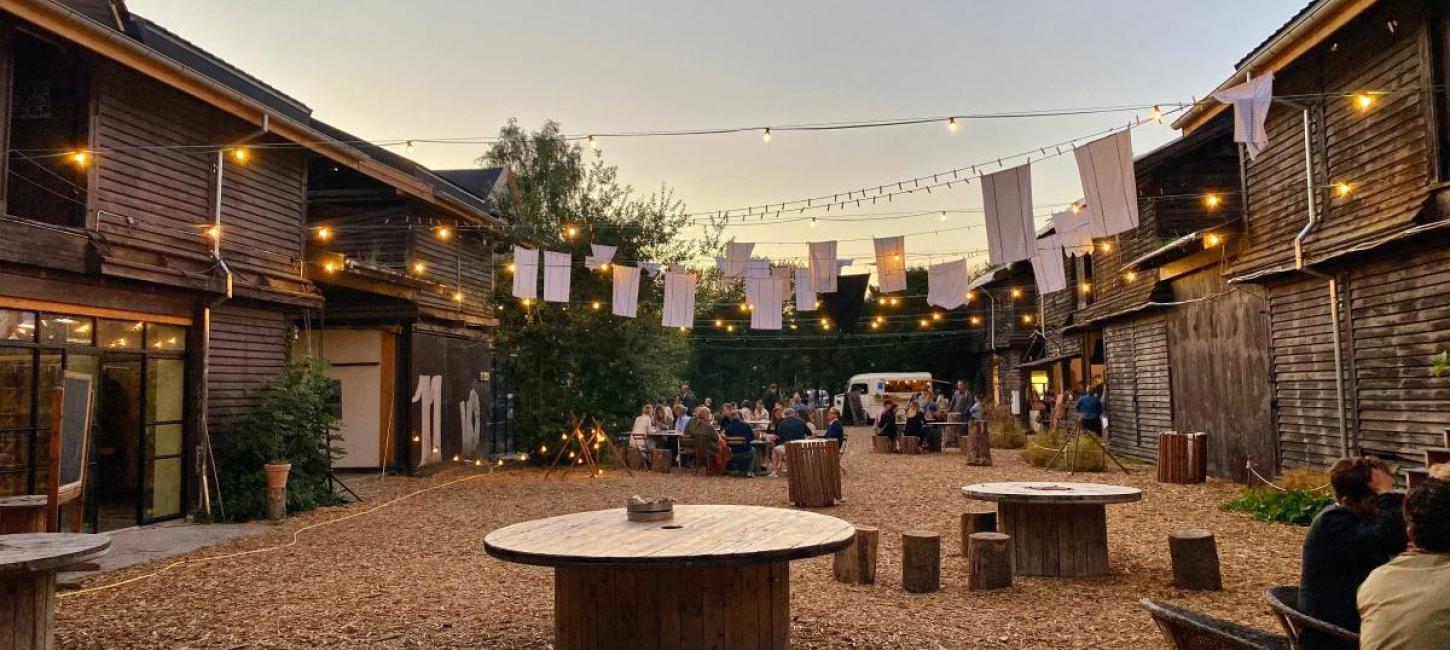 Everything is built sustainably with recycled materials, e.g. an old greenhouse from the botanical garden. An architect, a farmer, a chef and a carpenter are behind the place.